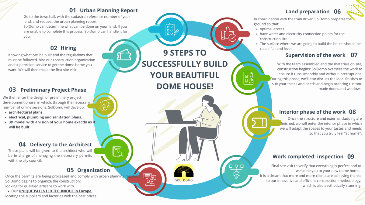 - Our dome house construction technology is patented in Spain and is currently in the process of patent registration in France.